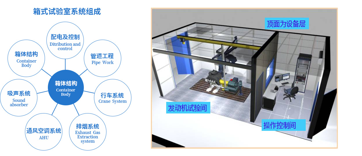 有的集装箱实验室还包括集装箱箱体、内装模块、舱面属具、实验室柜台模块、冷藏模块、暖通模块、管路模块和电气部分;所述内装模块设置在集装箱箱体内壁上;所述舱面属具嵌设在集装箱箱体上;所述实验室柜台模块设置在集装箱箱体内;所述冷藏模块设置在集装箱箱体内;所述暖通模块的一部分设置在集装箱箱体内,另一部分设置在集装箱箱体外;所述电气部分设置在集装箱箱体内。